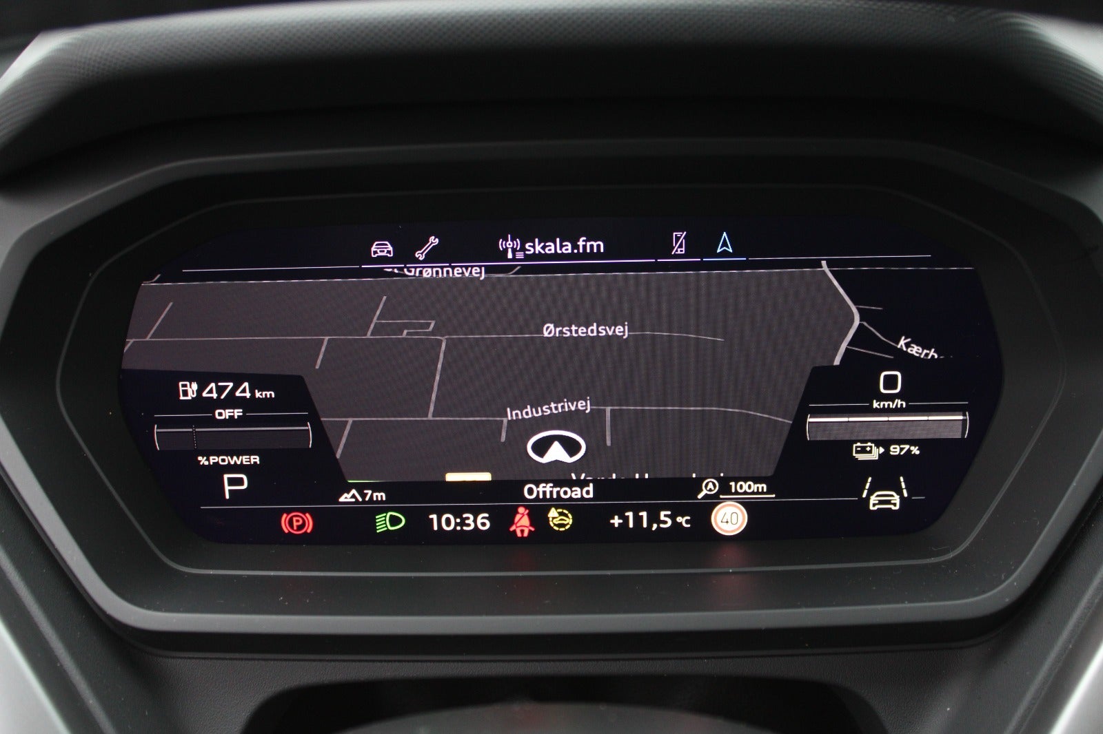 Assistentpakke plus, sikkerhedspakke plus, fjernlysassistent, ambientebelysning, skiltegenkendelse, DAB-radio, LED-baglygter m. dynamisk blinklys, parkeringsassistent, sædevarme, læder sportsrat m. multifunktion, Audi sound system, udkørselsassistent, udstigningsadvarselssystem, alu interiørlister, Connect pakke, fuldaut. klima, digitalt cockpit, komfortpakke, DC-batteriopladning (LH3), Smartphone interface, glanspakke m. blank ræling og blanke rudelister, aut. nedbl. bakspejl, front assist, udvidet sikkerhedssystem (PreCrash basic), el-justerbar lændestøtte, alarm, parkeringssensor for og bag, el-klapbare sidespejle m/varme, frakobling af passagerairbag, elektrisk bekjent børnesikring, højdejust. forsæder, kørecomputer, bagagerumsdækken, splitbagsæde, LED-kørelys, musikstreaming via bluetooth, isofix, automatisk lys, elektrisk parkeringsbremse, 4x el-ruder, udv. temp. måler, fjernb. centrallås, automatgear,