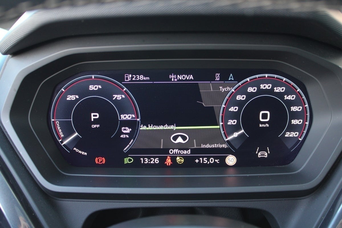 Ambientebelysning, mørktonede ruder i bag, fjernlysassistent, skiltegenkendelse, DAB-radio, Audi sound system, 3 zone klima, elektrisk kabinevarmer (parkeringsvarmer), sædevarme, sportsundervogn, læder sportsrat m. multifunktion, sort loftshimmel, emergency assist, interiørlister i børstet alu, smartphone interface, prædikativ speed-limiter, assistentpakke plus, smartphone pakke, komfortpakke, el-klapbare sidespejle m/varme, el-justerbar lændestøtte, front assist, LED-baglygter, DC-batteriopladning (LH3), parkeringssensor for og bag, digitalt cockpit, elektrisk betjent børnesikring, træthedsregistrering, Connect pakke, frakobling af passagerairbag, aut. nedbl. bakspejl, højdejust. forsæder, kørecomputer, bagagerumsdækken, splitbagsæde, nøglefri tænding, tagræling, kurvelys, automatgear, fjernb. centrallås, udv. temp. måler, 4x el-ruder, elektrisk parkeringsbremse, musikstreaming via bluetooth, isofix, automatisk lys,