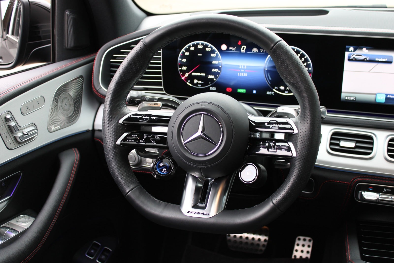Blindvinkelsassistent, vognbaneassistent, MBUX augmented reality, røde bremsekalibre, Apple Carplay og Android Auto, trådløs mobilopladning, fjernlysassistent, MBUX navigation premium, premium pakke, el betjent bagklap, obsidiansort metallak, aktiv parkeringsassistent, aktiv kø assistent, el indst. ratstamme, mørktonede ruder i bag, AMG sportsrat i nappalæder, sort loftshimmel, ambientebelysning m. farveskift, sædevarme, el-klapbare sidespejle, skiltegenkendelse, DAB-radio, bakkamera, memory pakke, parkeringspakke high, keyless go pakke, strækningsbaseret hastighedstilpasning, alu interiørlister, kabinelyspakke, spejlpakke, regnsensor, automatisk hastighedsregulering, udstigningsadvarselsassistent, smartphone integrationspakke, 9-trins aut.gear, digitalt cockpit, parkeringssensor for og bag, musikstreaming via bluetooth, træthedsregistrering, automatisk lys, isofix, kørecomputer, bagagerumsdækken, splitbagsæde, kurvelys, LED-baglygter, håndfrit til mobil, elektrisk parkeringsbremse, 4x el-ruder, udv. temp. måler, fjernb. centrallås, adaptiv undervogn, aut. nedbl. bakspejl, tagræling, LED-kørelys,