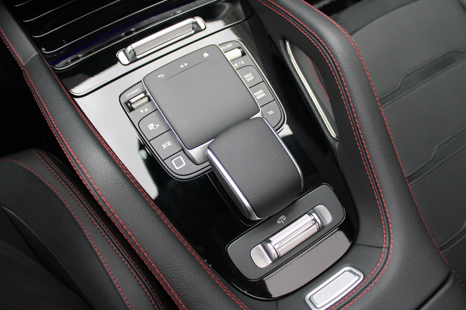 * Læder/alcantara kabine m. røde kontrastsyninger