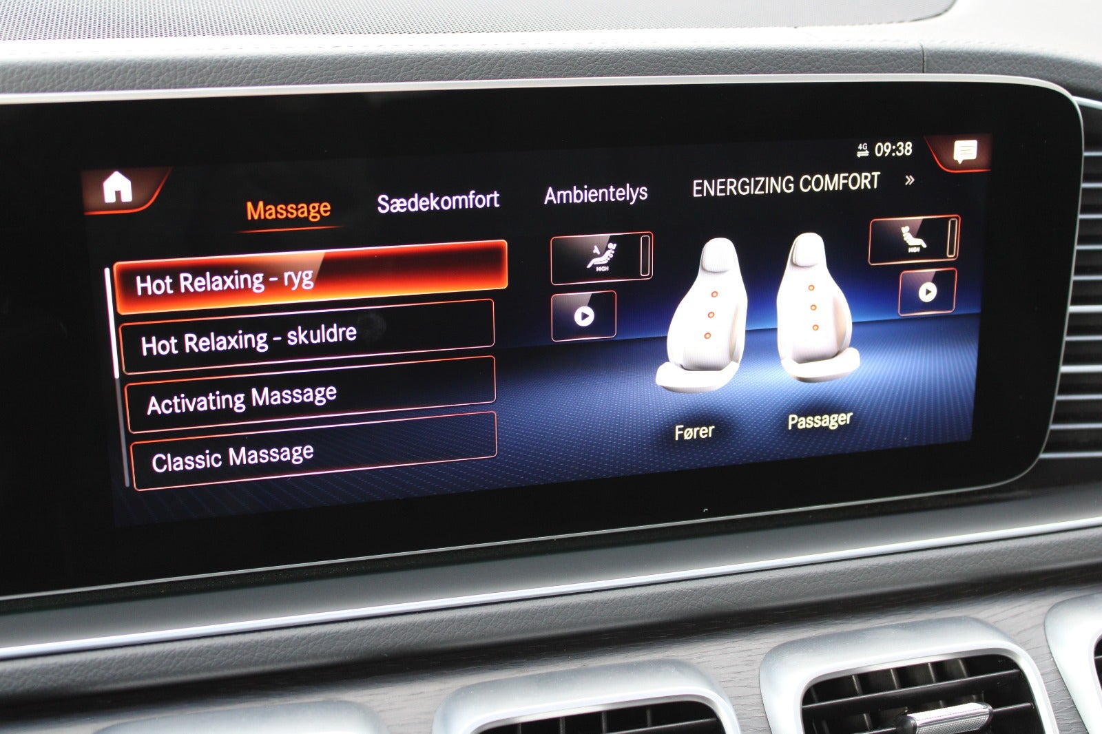 * Ventilation og massage i forsæder