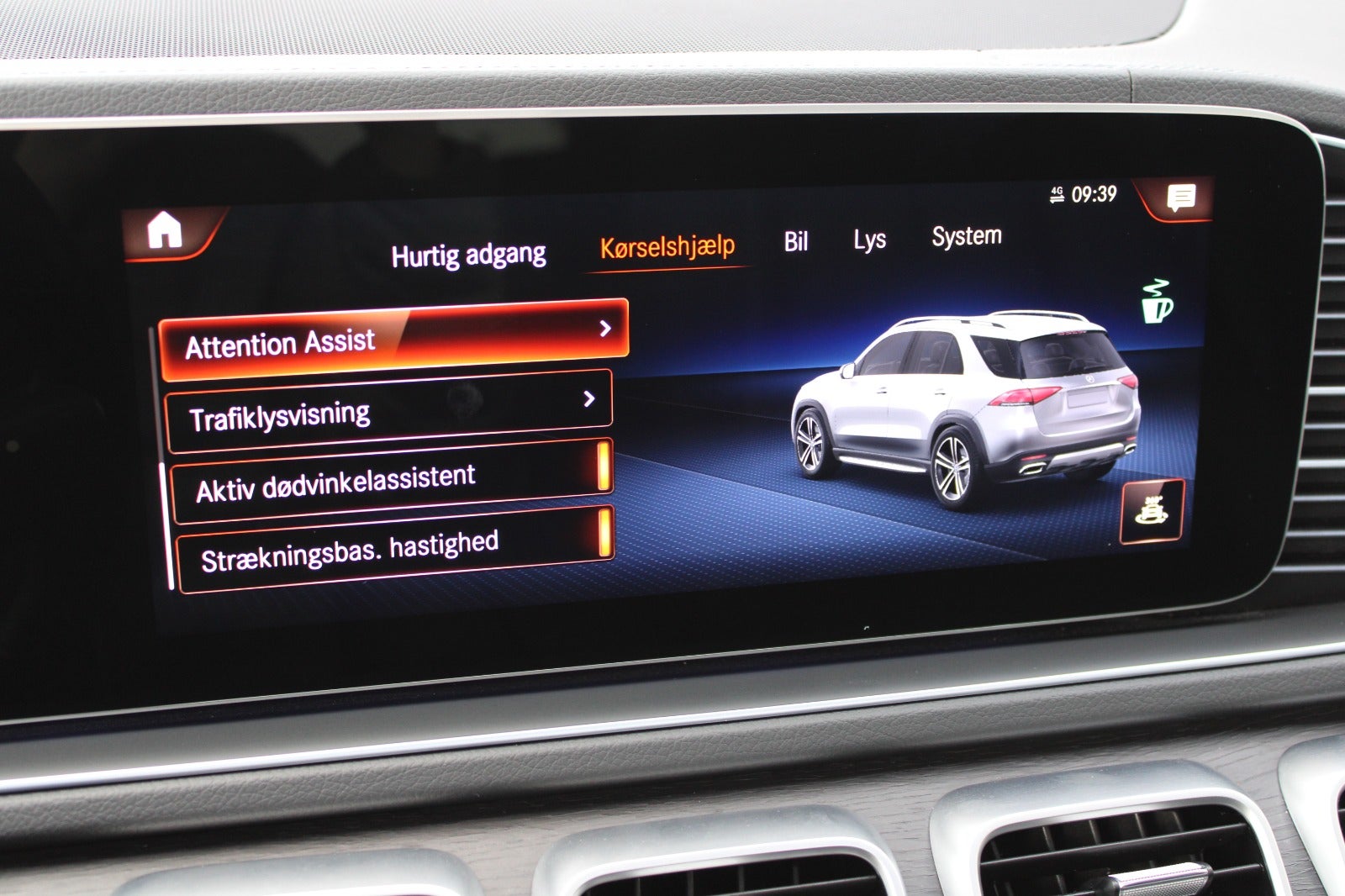 Komforthovedstøtter i for samt bag, elektrisk rullegardin i bagdøre, smartphone integrationspakke m. Apple Carplay og Android Auto, MBUX augmented reality, blindvinkelsassistent, vognbaneassistent, 4 zone klima, air balance pakke, el betjent bagklap, trinbrædder i alu look, selenitgrå metallak, mørktonede ruder i bag, fjernlysassistent, PRE-SAFE impuls side, aktiv parkeringsassistent, aktiv kø assistent, komfortsædevarme foran, læder sportsrat m. multifunktion, skiltegenkendelse, DAB-radio, memory pakke, udstigningsadvarselsassistent, ambientebelysning m. farveskifte, parkeringspakke high, strækningsbaseret hastighedstilpasning, komfortvarmepakke foran, magic vision control, automatisk hastighedsregulering, kabinelyspakke, MBUX pakke, spejlpakke, el-klapbare sidespejle, 9-trins aut.gear, navigation, elektrisk kabinevarmer (parkeringsvarmer), sideairbags i bag, nødopkaldssystem, digitalt cockpit, aut. nedbl. bakspejl, adaptiv undervogn, udv. temp. måler, 4x el-ruder, keyless go pakke, elektrisk parkeringsbremse, kørecomputer, bagagerumsdækken, splitbagsæde, mørk loftbeklædning, tagræling, kurvelys, fjernb. centrallås, musikstreaming via bluetooth, håndfrit til mobil, parkeringssensor for og bag, bakkamera, regnsensor, isofix, automatisk lys, træthedsregistrering,