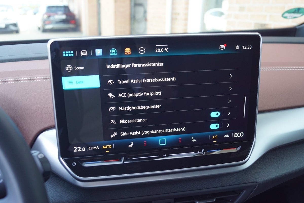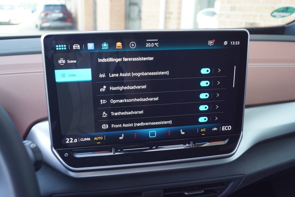 Wireless App-Connect, 3 zone klima, varme i rat, kø assistent, parkeringsstyreassistent, assistentpakke plus, multimediapakke plus, fjernlysassistent, ambientebelysning, skiltegenkendelse, DAB-radio, komfortpakke plus, interiørpakke plus, designpakke, prædikativ speed-limiter, DC-batteriopladning (LH3), LED-baglygter, udkørselsassistent, udstigningsadvarselssystem, emergency assist, køreprofilvalg, læder multifunktionsrat, sædevarme, navigation, udvidet sikkerhedssystem (PreCrash basic og front), elektrisk kabinevarmer, mørk loftbeklædning, el-justerbar lændestøtte, træthedsregistrering, front assist, el-klapbare sidespejle m/varme, alarm, aut. nedbl. bakspejl, regnsensor, isofix, frakobling af passagerairbag, digitalt cockpit, kørecomputer, bagagerumsdækken, splitbagsæde, massage i førersæde, kurvelys, mørktonede ruder i bag, automatgear, fjernb. centrallås, udv. temp. måler, 4x el-ruder, elektrisk parkeringsbremse, musikstreaming via bluetooth, håndfrit til mobil, bakkamera, parkeringssensor for og bag, automatisk lys,